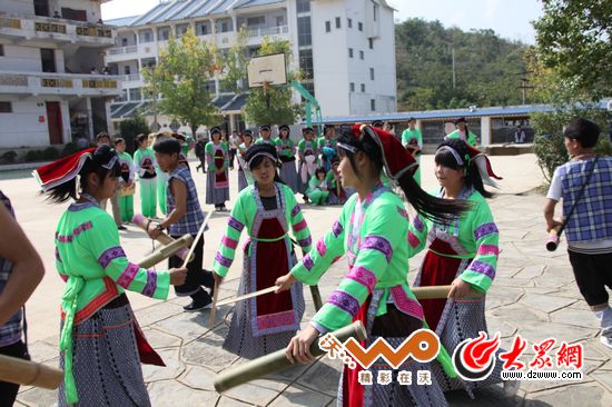 黃果樹中學的學生在表演剛剛學會的布依舞蹈。