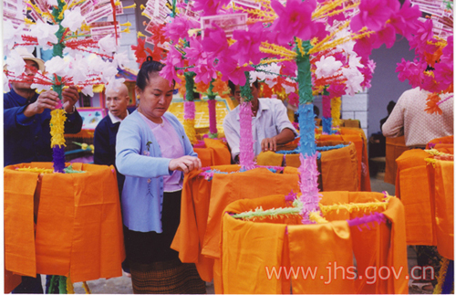 8.賧沙蘭:在傣歷十一月賧衣服、金銀、生活用品給死去的父母和祖先,需時三天。