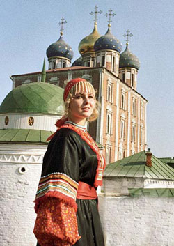 由于俄羅斯獨特的氣候和地理位置,并非每款時裝都適合。因此,這就決定了俄羅斯人在取世界之“精華”之外,必然完整地保存著適應本民族特點的服飾。自古以來,俄羅斯就形成了自己民族所喜愛的傳統服裝,多少年來,民間一直保存著這些獨具俄羅斯韻味的穿著。