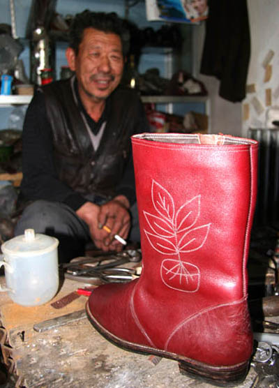 俄羅斯族男性主要從事靴鞋加工、裁剪縫紉和木工雕刻等行業。他們設計制作的男女皮鞋、皮帶等品種多樣,色彩鮮艷,加工精美,深受人們的歡迎。此外,他們還善于把金屬、玉石和木料等雕刻成各種工藝品。俄羅斯族女性擅長編織與刺繡,她們能用各色毛線、絲線編制掛毯、坐墊、地毯、頭巾等,上面還繡有人物、花鳥、野獸等圖案,美觀大方,精致高雅,都是精美的手工藝品。
