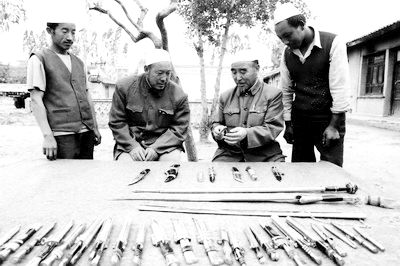 就這樣,保安人依靠冶鐵技術(shù)和保安腰刀,在積石關(guān)口進(jìn)進(jìn)出出,來回奔波,發(fā)展了自己的商業(yè)經(jīng)濟(jì),使昔日人口稀少、雜草叢生的大河家出現(xiàn)了繁榮景象。早在1957年,當(dāng)時(shí)的地方政府就把分散的制刀工匠組織起來,在大河家建立了刀具廠,并開始成批生產(chǎn)保安腰刀。改革開放后,大河家的商貿(mào)流通日益活躍,在政府“建一處市場(chǎng),帶一批產(chǎn)業(yè),富一片地方”的思想指導(dǎo)下,大河家終于變成了甘、青兩省三個(gè)自治縣(積石山、民和、循化)的物資交流中心。