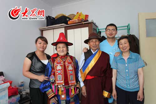 合影時,一身民族盛裝的老兩口很遺憾地說兒孫們的民族服裝都不知壓在哪個箱子底下了,而且也小得穿不上了。歲月滄桑,遠離牧區(qū)已經幾十年,民族服飾就象一種信仰牢牢扎在了他們的心中。