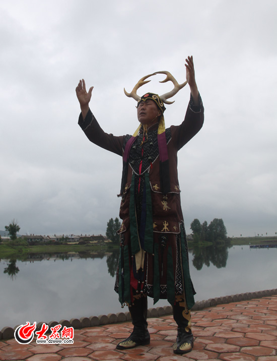 [提要] 吳寶臣投入的表演赫哲族的伊瑪堪,伊瑪堪是一種赫哲族民間口頭說唱文學形式 ,幽婉而又神秘。