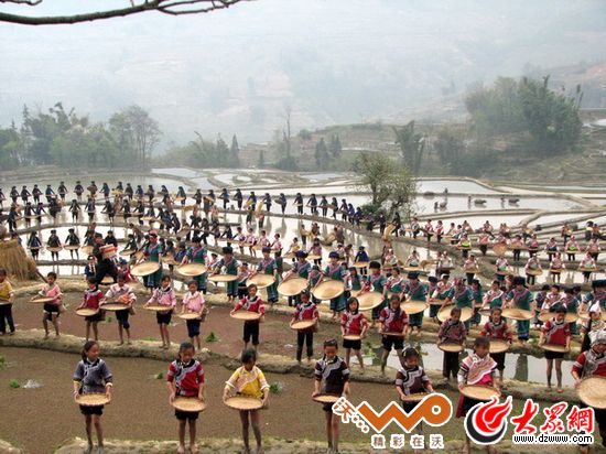 哈尼族大型農(nóng)耕表演。