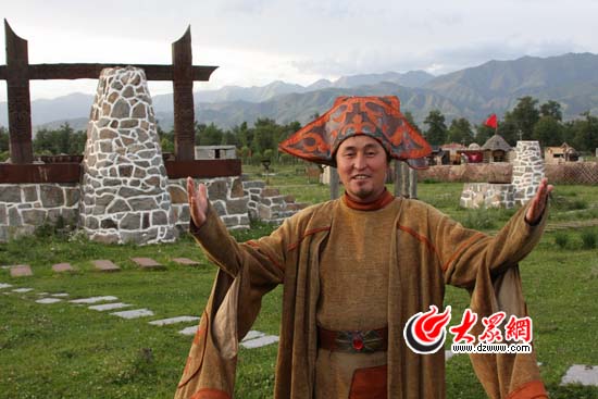 吐爾汗別克扮演烏孫國法師。他的身后是重達三點六噸的天鍋,一次可煮40只羊