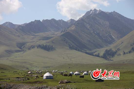 大眾網-聯通3G那拉提8月17日報道(特約記者 施曉亮 特派記者 劉國棟) “不到新疆不知中國之大,不到伊犁不知中國之美。”伊犁河谷最美的地方就是那拉提草原。這里是世界四大河谷草原之一,亞高山草甸植物區。2000多年前,這里是哈薩克族的祖先烏孫人馳騁的王國,他們把這塊水草豐美的河谷草原稱為“太陽升起的地方”;如今這里依然是哈薩克族人的天下,2005年5月4日,那拉提草原作為中國之最哈薩克族人口最多的草原被大世界吉尼斯之最收入榜中(比哈薩克斯坦的人口還多),這里可以說是哈薩克人的大本營。8月17日,“黨旗漫卷中國紅——走進56個民族家庭大型接力式采風”活動采訪團一行走進美麗而神秘的那拉提草原,走近一位執著于本民族文化傳播的青年人,在他的講述中探訪遙遠的哈薩克族人的烏孫國文明。