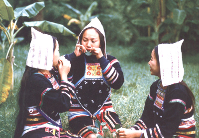 新中國成立前,基諾族社會尚處于原始社會末期向階級社會過渡階段,還保留著許多古俗。如血緣婚的遺跡依然存在,有的村寨并不禁止氏族內婚;有的村寨禁止氏族內婚,但不禁止氏族內的戀愛同居。母系氏族公社的遺俗也相當多,平時只有母親才有權為生病的子女殺雞“招魂”;在上新房的儀式上,第一個手持火把登樓點燃火塘的是氏族內最年長的女性;村社長老雖已是男性,但他們仍沿用母系氏族公社時代的稱號——“左米尤卡”,即村寨的老奶奶。由父系公社取代母系公社,大約有300余年的歷史。個別村寨在20世紀40年代尚有百余人共居的大竹樓,這個父系大家庭公社雖然共居一處,但分居各房間的小家庭卻又是個體經濟,單獨生產和消費,呈現了父系大家庭公社末期的過渡狀態。這些原始社會古老遺跡可謂基諾村社的特點之一。