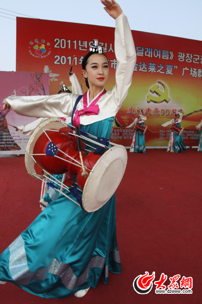 朝鮮族姑娘在表演長鼓舞。