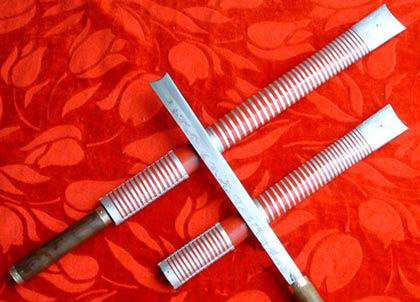 在景頗人的生產(chǎn) 生活當中,總是離不開長刀。他們砍山打獵,要用長刀;結交朋友,要贈長刀;男女戀愛,要送長刀;木腦縱歌,要舞長刀,……長刀是景頗人的勞動工具生活用具戰(zhàn)斗武器,是景頗男子的裝飾品,是景頗民族精神的象徵物。
