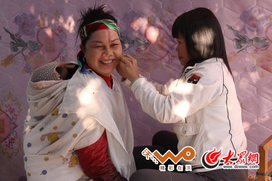 用棉線剪面的京族婦女