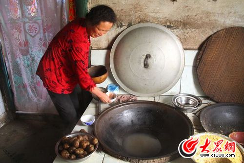 滿族人家在用火灶煮土豆