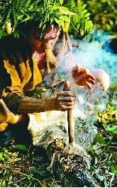 考古發(fā)現(xiàn)的取火工具并不完整,缺乏具體過程,被視為“死化石”。為了解決上述考古現(xiàn)象,必須借助民族學(xué)資料,而黎族的鉆木取火不僅有取火的工具,還能考察到取火的具體過程及其細節(jié),這對印證考古資料具有重要的參考價值。所以,在2005年,鉆木取火作為國家非物質(zhì)文化遺產(chǎn)進行保護。(記者于偉慧/文李幸璜/圖)