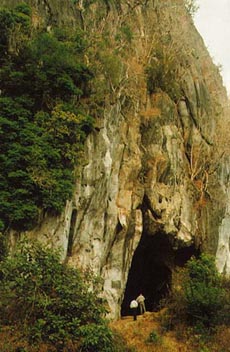 廣東海南島崖縣三亞鎮(zhèn)西10公里處。、山的東端面南有一石洞。洞內(nèi)石灰?guī)r質(zhì)。洞里項壁正中,一石柱下垂如懸筆,筆尖終年滴水不斷,地下有一平面石塊,正好承接筆尖摘下來的水,人們稱此洞為仙洞神筆。當(dāng)?shù)乩琛h民族的人民送子上學(xué)前,都要帶孩子前來此洞祈禱,伸手接筆尖滴下的水,接住水,則預(yù)兆孩子聰明好學(xué),前途無量。此仙洞外不遠還分布有十余個洞,個個迂回宛轉(zhuǎn)。洞中有石筍,形似馬、狗、猴等動物,實在是旅游的好去處。