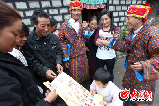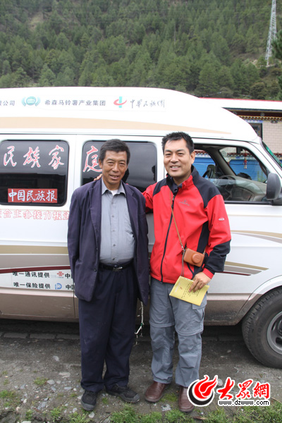 12日上午,采訪團(tuán)從途中小憩的工布江達(dá)縣沿著川藏公路穿行百余公里后,到達(dá)中國(guó)唯一的門巴族聚居鄉(xiāng)——更章門巴民族鄉(xiāng),當(dāng)時(shí)采訪團(tuán)還未從沿途秀麗的山川美景中回過神來,采訪車已駛?cè)肓艘粋(gè)頗有現(xiàn)代氣息的小鎮(zhèn)。在下車問路時(shí),領(lǐng)隊(duì)施曉亮與10年前的采訪對(duì)象門巴族多布登大哥意外相逢。