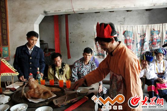 仫佬族“道師”為同族百姓做道場——合兵。(謝盛鉅 攝)