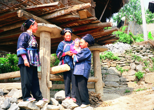苗族過去無文字,本世紀初,在黔西北威寧石門坎地區傳教的英國人坡拉德同苗、漢族知識分子楊雅各、張武、李斯提文等人配合使用部分拉丁文字母和一些記單符號,以石門坎苗族的語音為標準音,創造了一個拼音文字,稱為“坡拉丁文字母苗文”(俗稱“老苗文”),用以翻譯基督教圣經,編寫課本,記錄苗族民間故事、詩歌以及記事等。40年代,操川黔滇方言東北次方言的部分苗族遷徙并定居在今洗鴨河鄉新池村,將“坡拉字母苗文”傳入紫云,現仍在通用,而且新池小學用該文字及漢文字進行雙語教學。50年代,在中國共產黨和人民政府領導下,培養了大批包括苗族學者在內的語言學家,對全國苗族語言進行了普查研究,改革了“老苗文”,創制了東部、西部、中部三種方言的拉丁拼音苗文。但由于苗族內部支系復雜,語言差異很大,極難統一。