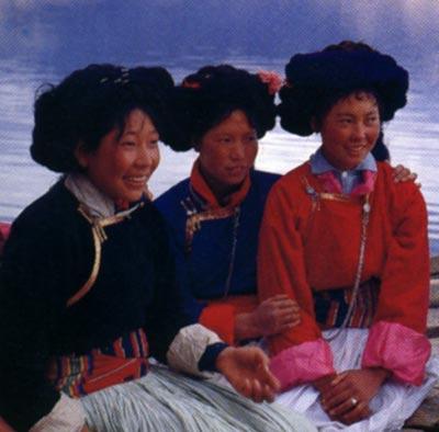 歌聲中,由姑娘們組成的送親馬隊簇擁著騎上高頭大馬的新娘,前往新郎家。一路上,她們歌聲不斷,嬉戲逗趣,好不熱鬧,好不風光!在寧蒗等地,新郎和迎親者不直接來到女方家迎親,而是采用半路迎娶的方式。在蘭坪等地,新郎和迎親者要直接來到女方家,且要經過一定的儀式,才能迎娶新娘。蘭坪等地迎親和送親的人們一般不騎馬,而是走路、乘汽車或拖拉機。