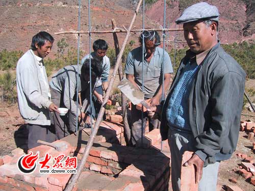 馬洪升憑記憶畫出天香塔的圖樣,指揮本村的村民義務修建天香塔。所有的建筑材料都靠人拉馬駝運上山,吃飯就是在山上用樹枝燒點米飯。看著漸具芻形的天香塔,老馬說他比上班還充實。