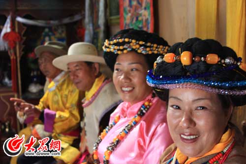 光布卓瑪(右)、雄巴米米(右二)姐妹倆是麗江市級非遺傳承人。她倆會演唱許多普米族的傳統(tǒng)民歌,這在這個年齡的普米族人中不多見了