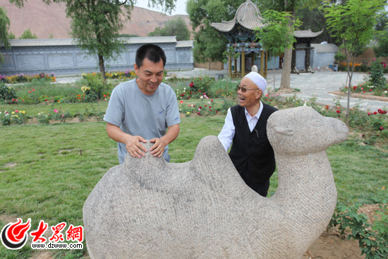 施曉亮與韓占祥在駱駝旁回憶9年前采訪時(shí)的情景