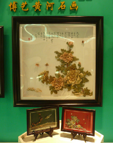 “黃河石藝”用天然石材制成,這些畫品皆具有天然的立體感,放在一起,則會產生“橫看成嶺側成峰”的效果。