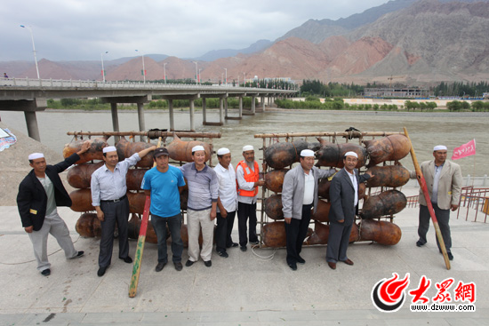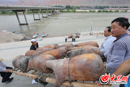 撒拉族非常有特色羊皮筏子。