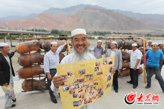 采訪團(tuán)循化坐羊皮筏子漂流"天下最美"黃河