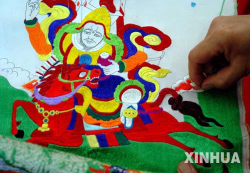 除服飾外,土族的刺繡工藝還應用于佛殿經堂中的各種佛像、經幡、柱毯、壁毯等的制作。使傳統的民族民間手工藝與藏傳佛教藝術有機地融為一體。