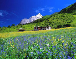 四姑娘山是一片神奇美麗的土地,氣候特殊,垂直高差顯著,動植物資源十分豐富。其中的山山水水都是那樣的原始、古樸、幽靜和神秘。春風中百花盛開;夏日里草木蔥蘢;金秋時節色彩繽紛;寒冬季節白雪皚皚。四時風姿,各擅其美,朝暉夕陽,氣象萬千,一派秀美的南歐風光。