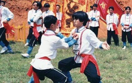 畬族武術基本上可分作棍術和拳術兩大類。由于根術器械的長短及其功用有別,又有不同的名稱:一種叫“丈八棍”,長一丈二尺,由單人耍弄;另一種叫“齊眉棍”(或稱“盤柴槌”)長六尺(或四尺八寸),供兩人對打。棍術動作復雜多樣,有雙頭槌、三步跳、四步半、七步、九步、猴子翻身、天觀地測等。