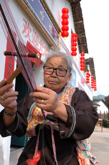 畬家老婆婆正在編織畬族特色彩帶