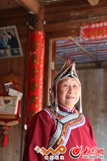9年前照片,藍陳契在她的老宅里精心穿戴畬族傳統服飾。(施曉亮 攝)