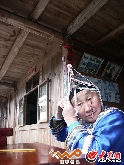 藍大媽頭上戴的是畬族傳統的銀飾鳳頭冠,據藍大媽講,這套頭飾到她為止已經傳了四代。