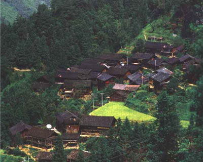 水族村寨一般選擇在平壩建村,或在半山腰臺地建村,少數(shù)在山頂建村。村寨的規(guī)模大小不等,一般有十幾戶、幾十戶,少者只有幾戶,多者達(dá)上百戶。水族是農(nóng)耕民族,村寨大小要根據(jù)耕地面積而定,耕地集中面積大,則村寨大,耕地分散面積小,則村寨小。老寨大而新寨小。但不論是哪種類型的村寨,都要有下列四個有利條件才可作為選擇蓋屋建寨的場所:一是容易獲得水源的地方,二是有建筑房屋的竹、木等材料的處所,三是靠近耕地的地方,以便耕種,四是野獸出沒較少的地方。