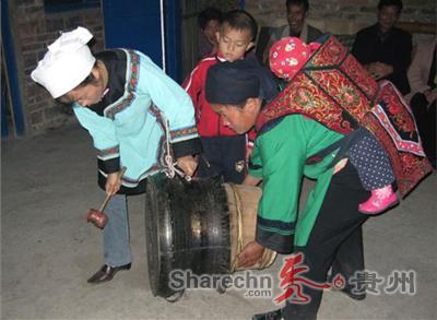 水族人民世世代代酷愛銅鼓,并視為權力、財富和圖騰崇拜的象征。有人說,水族山鄉是“銅鼓王國”,這話當然有點夸張和浪漫色彩,但僅就三都水族自治縣與都勻市毗鄰的3個水族鄉,至今仍保存和使用400多面古代銅鼓,幾乎每個自然村寨或家族都有一兩面銅鼓。
