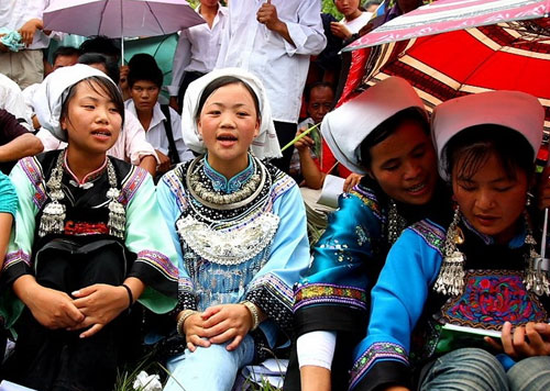 [提要] 三都水族卯節(jié)在卯坡的青年男女正在卯坡對歌的水族姑娘 水族的卯節(jié)古老的而神秘被成為“東方情人節(jié)”。卯坡,位于貴州省黔南布依族苗族自治州三都水族自治縣九阡鎮(zhèn)水各大寨,是水族青年男女以歌傳情、以歌示愛,尋找意中人的地方。