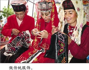 在這個(gè)縣只要有人的地方,就有紅色,就有塔吉克族婦女。塔吉克族婦女都喜歡穿連衣裙,除了老年人和中年人外,年輕人則都穿紅色的連衣裙,有的是純紅色的,有的在紅色的布、綢上還印有小白花,有的在裙擺上也繡有花,有的紅色裙子上還帶隱形的圖案,雖然裙子質(zhì)地和花紋略有不同,但遠(yuǎn)看仍是一片耀眼的紅色。紅色被認(rèn)為是青春的象征,充滿了活力,身材修長(zhǎng)的塔吉克族姑娘穿上紅色的連衣裙,能更加顯示出她們蓬勃的朝氣和曲線美。