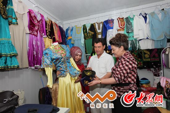 集市上的民族服飾店生意火爆