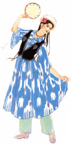維吾爾服飾形式清晰,紋飾多樣,色彩鮮明,圖案古樸,工藝精湛,其發(fā)展演變規(guī)律清楚,有些服飾款式與新疆出土衣物頗為相似,體現(xiàn)了一個(gè)地區(qū)、一個(gè)文化的歷史沉淀。又具有鮮明的民族文化特色的審美接受范式,從中窺見民族服飾的傳承性與地域性的習(xí)俗。
