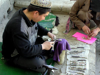 維吾爾族青年在制作英吉沙小刀