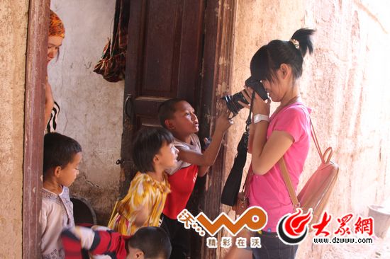 小記者在給維族小朋友們拍照