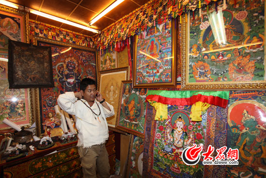 民間唐卡畫師丹增,7歲跟隨爺爺學畫唐卡,后拜入多位唐卡大師門下。如今自己也帶數(shù)十名徒弟,嚴格按照傳統(tǒng)工藝繪制唐卡,他相信雖然魚龍混雜,但總有識貨人。