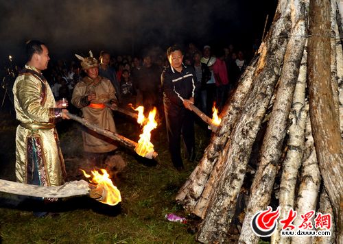 鄂倫春族代表點燃篝火