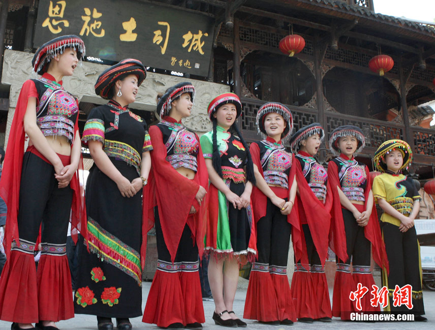 土家族愛群居,愛住吊腳木樓。建房都是一村村,一寨寨的,很少單家獨戶。所建房屋多為木結(jié)構(gòu),小青瓦,花格窗,司檐懸空,木欄扶手,走馬轉(zhuǎn)角,古香古色。一般居家都有小庭院,院前有籬笆,院后有竹林,青石板鋪路,刨木板裝壁,松明照亮,一家過著日出而作,日落而息的田園寧靜生活。