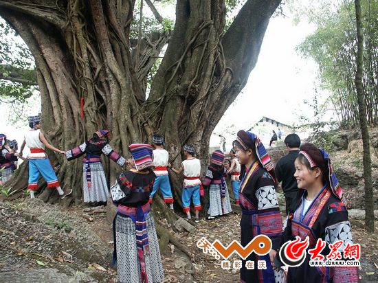 [提要] 離世界級的風景黃果樹瀑布一公里,就是中國第一個布依民族村——滑石哨。還沒進村,村頭那株碩大的榕樹就迷住了我。哇,真的好大!這棵2000多歲的榕樹爺爺,枝繁葉茂,冠蓋達兩畝多。胸徑4米多,要16個成人手拉手才能圍得過來。像這樣的千年樹精全村目前有12棵!你驚到了吧?還有更驚的:“文革”之前,滑石哨周圍到處是這種古樹,數不過來。哇塞!想想那是種什么情景!