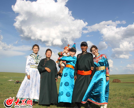 大眾網-聯通3G巴彥托海7月12日報道 (特派記者 劉國棟)鄂倫春族打獵被稱為“山嶺上的人”,鄂溫克族生活在平原上從事著農牧,則被稱為“山下的人們”。7月11日,“黨旗漫卷中國紅——走進56個民族家庭大型接力式采風”活動采訪團告別大興安嶺深處的鄂倫春族后,來到了中國最美麗的草原——呼倫貝爾大草原,走近生活在這里的鄂溫克族——寶音巴圖一家,十年前的三個女兒如今已經出落成“三朵金花”。
