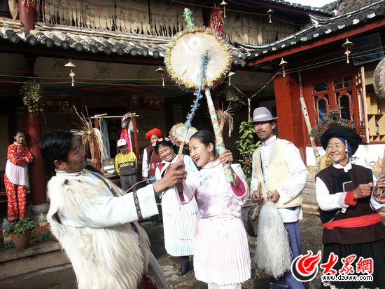 納西歌王肖汝蓮在當(dāng)?shù)匾晃焕先说摹跋矄省鄙铣瑁ㄗⅲ簣D片為施曉亮十年前攝)