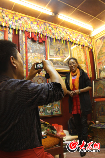 大眾網-聯通3G拉薩9月10日訊(記者 王磊) “黨旗漫卷中國紅——走進56個民族家庭”采訪團在拉薩采訪期間,陪同我們的中國西藏網藏族女記者貢桑拉姆引起了我們的采訪興趣:從西藏阿里地區普蘭縣西德村小山村到首都北京,從買不起一雙新皮鞋到中央媒體的記者,這位從北京西藏班走出來的阿里女孩向我們講述了“知識改變命運”的親身經歷、以及她親眼見證的西藏巨變。在采訪結束時,拉姆飽含深情地唱起了一首藏族民歌,獻給黨的90歲華誕。