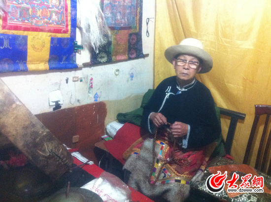 當天采訪的最后,我們來到了東巴神院,納西族老東巴和振偉正在用古老的納西象形文字給游客們寫下祝福。和振偉告訴我們,為了傳播東巴文化,到此的游客可以隨便說出一兩句祝福語,由院內的東巴教徒用納西文字予以圖解,寫在一種顏色類似牛皮紙的“東巴紙”上,贈給大家。我們到的時候,和振偉正用他的木水筆沾上墨,用納西象形文字為一位游客書寫“真愛一生”四個字。其中“愛”字讓我們覺得最有意思,它的寫法是一個男人和一個女人牽著手,中間是一根針便是“愛”。