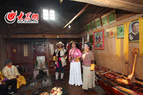 在普米傳統(tǒng)民居內聽普米族的傳統(tǒng)民歌,越聽越有味道.